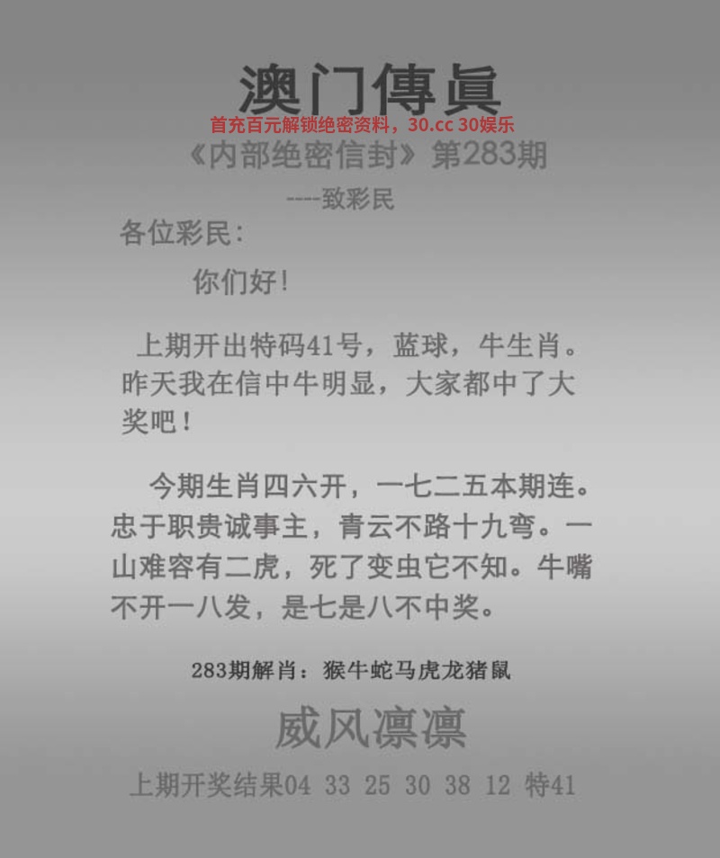 282期:绝杀三肖【鸡羊猪】开:牛41中 |